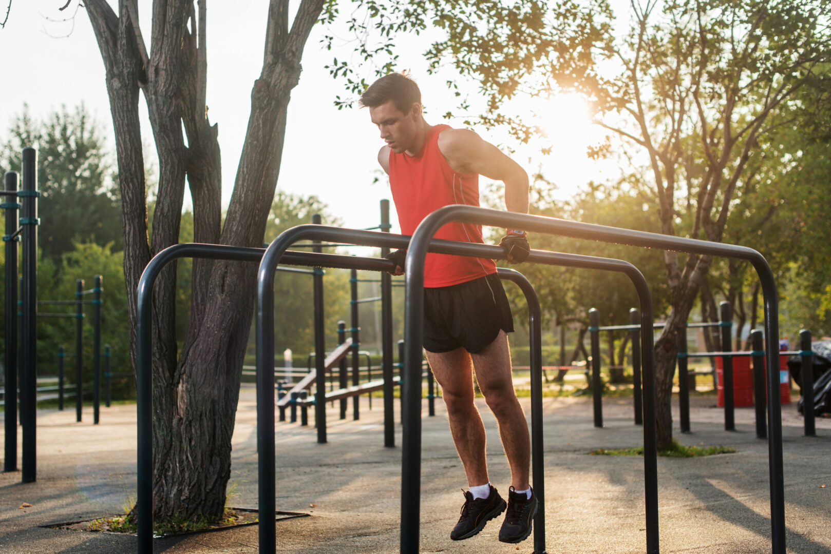 Wie Klimmzüge gehören auch Dips zu den Grundübungen im Kraftsport. Mit der Übung trainiert ihr insbesondere euren Trizeps und den großen Brustmuskel (vor allem den unteren Teil) und zu einem gewissen Grad auch den Deltamuskel (befindet sich über dem Schultergelenk).